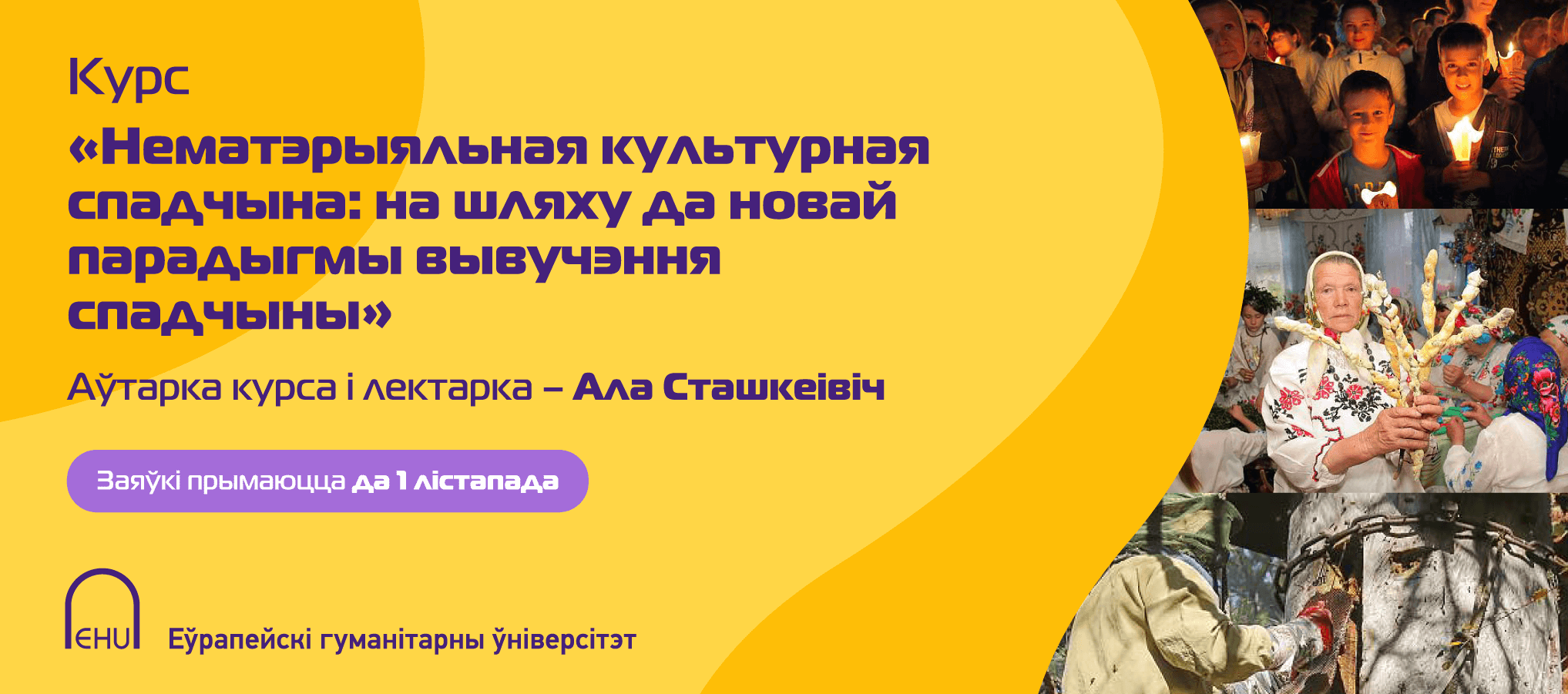 Аўтар курса і лектор – Ала Сташкеівіч, фасілітатар Глабальнай сеткі ЮНЕСКА па павышэнню пантэнцыялу ў галіне нематэрыяльнай культурнай спадчыны (Еўрапейская група).