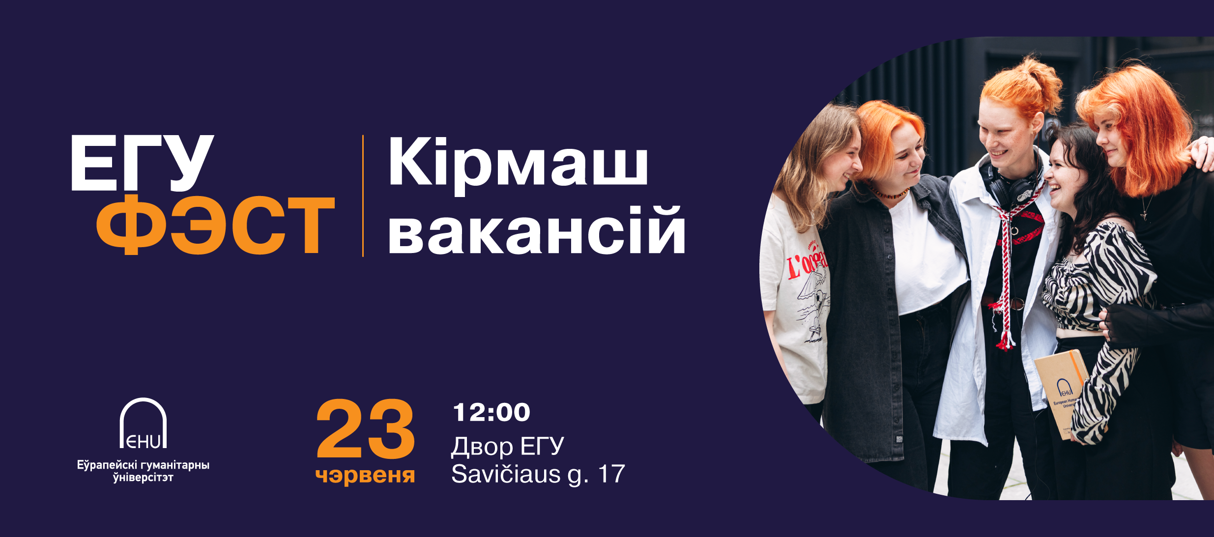 Для ўдзелу ў мерапрыемстве неабходна зарэгістравацца па спасылцы: для абітурыент_ак; для студэнт_ак; для выпускні_ц; для гасцей не з ЕГУ.