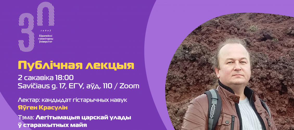 Лекцыя пачнецца а 18 гадзіне у 110 ауд. корпуса ЕГУ (Savičiaus g. 17).