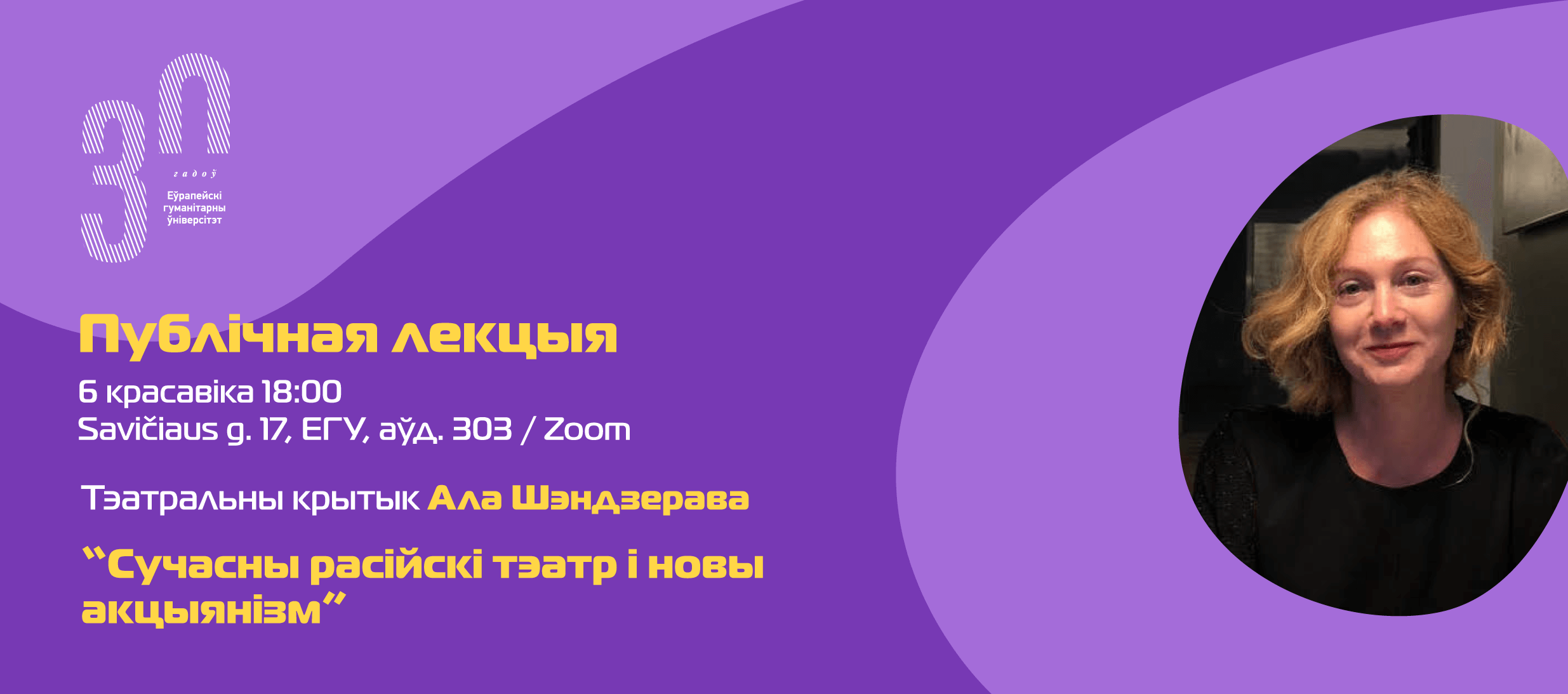 Лекцыя пачнецца а 18 гадзіне у 303 ауд. корпуса ЕГУ (Savičiaus g. 17).