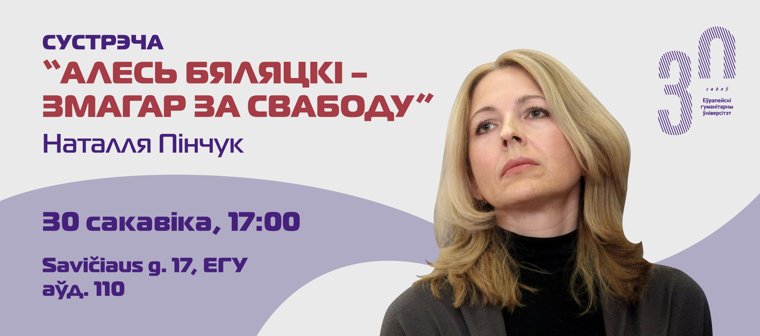 Мерапрыемства дасць магчымасць даведацца пра дзейнасць Беларускага грамадскага дзеяча і праваабаронцы, Алеся Бяляцкага. Больш за тое, падчас сустрэчы вы пазнаёміцеся і з жонкай Нобелеўскага лаўрэата – Наталляй Пінчук.